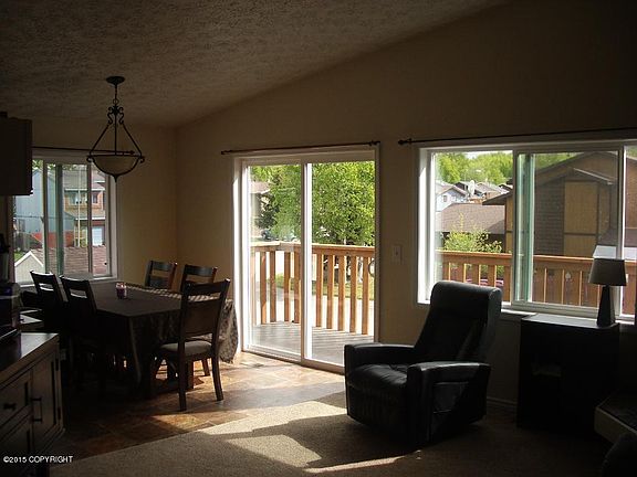 Great ZLL! NO DUES! New exterior paint, windows, exterior doors, interior paint, lino. Newer energy efficient on demand hot water heater, garage doors, bath remodel with corian, rubber decking, and laminate flooring. Nice big fireplace, big fenced back yard, and close to No Lts and Muldoon for easy eastside access.