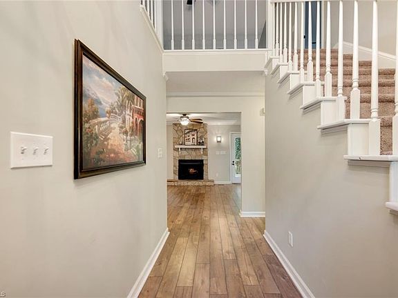 Fantastic opportunity in desirable Lewisville/Pfafftown location! Updated brick home on private cul-de-sac lot. Main level features plank flooring and renovated kitchen including stainless steel appliances, shaker cabinets with brushed nickel hardware, tile backsplash, pantry & eat-in area. Open to the kitchen, this spacious living room has a stone fireplace with matching hearth and wood mantle. Two glass doors walk out to the large deck. Formal dining has sunny bay window and tall wainscotting trim - ideal for any holiday! Primary bedroom on main with private bath features quartz countertops and terrific walk-in closet. Huge loft area with vaulted ceiling divides the roomy bedrooms on the 2nd floor, one with double closets and the other a walk-in. Loft popcorn ceiling just removed and repainted! Unfinished basement is perfect for storage, workshop or expansion potential. Enjoy the quiet life in Hunters Trace!