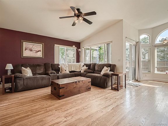 FALL in love with this 3 bedroom 3 bath Ranch, featuring an attached 2 car garage. You won't want to miss this opportunity! Main floor welcomes you with open living area with fireplace, office space, beautiful oversized windows and two spacious bed & bathrooms with gorgeous granite counter tops. The master bedroom features an ensuite 5-piece bath with oval tub, shower, and large walk-in closet! Laundry area on main floor, Kitchen has granite counter tops, 5-piece gas stove, wood floors, pantry, eat in area off of kitchen with beautiful Bay window allowing tons of natural lighting throughout home. On the Lower level you will find the 3rd bedroom and bathroom that sits next to the cozy family room that offers a ton of additional living space. Backyard has covered patio, lots of room for entertaining, gardening or just relaxing on a nice summer evening. The home sits in an ideal location, right on the corner lot next to a large Greenbelt with access to open space, walking trails, and the community pool. This Highlands Ranch home is located near four great rec centers, tons of entertainment and Douglas County Schools.
