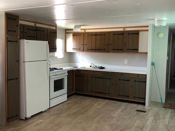 This is a cute mobile home located in a business area. Nice fenced yard with shade tree's. Newly remolded with a wood burning stove. With a washer and dryer in the mobile home. Tenant pays propane
