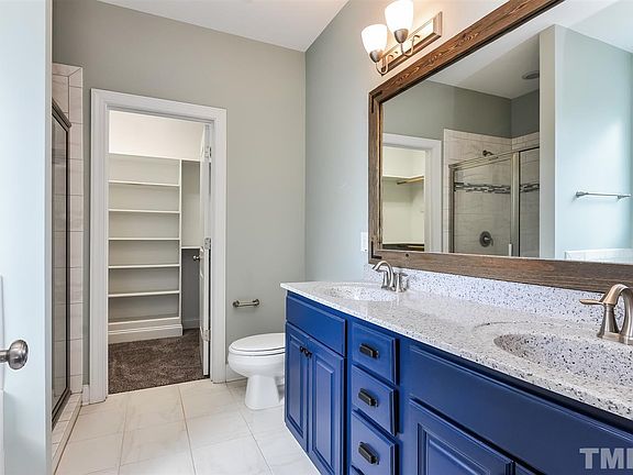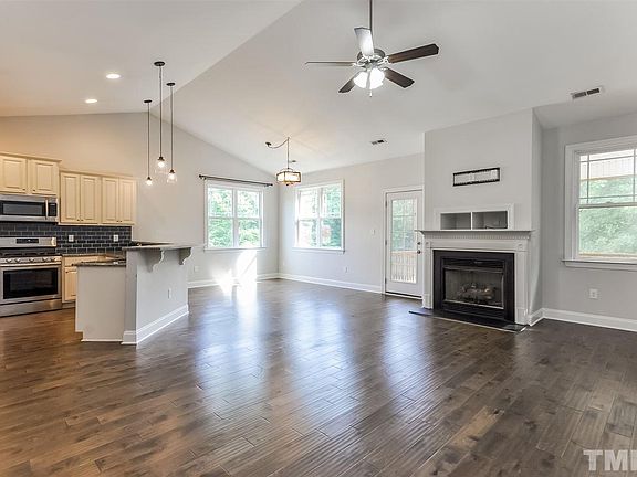 Built in 2015, this Garner one-story home offers stainless steel appliances, a deck, a fireplace, and a two-car garage.