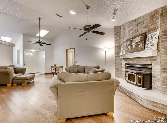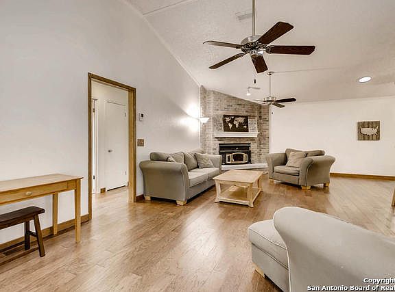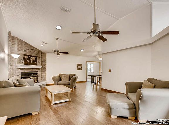 This beautiful one story home features an open floor plan & is move-in ready! The spacious family room boasts soaring ceilings w/ceiling fans, a floor to ceiling brick fireplace, & laminate floors. The kitchen features ample storage, stainless steel appliances, a breakfast bar, & breakfast seating area. Separate dining room. Large master suite w/ full bath & walk-in closet. No carpet in home. Spacious yard w/ mature trees & shed for extra storage. 2 car garage and more!