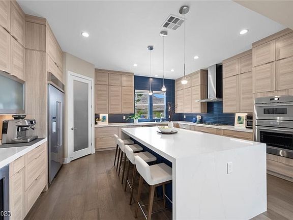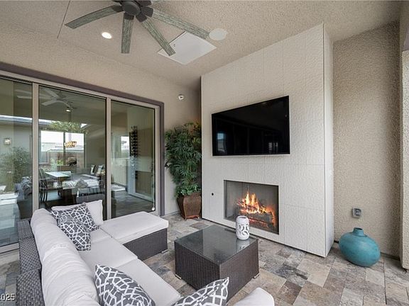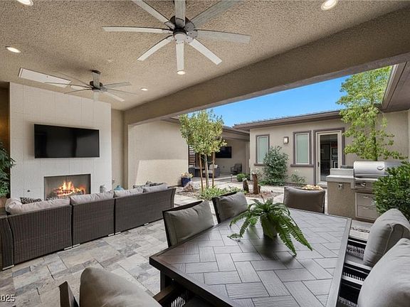 Welcome to luxury living in the prestigious guard-gated active community of Regency in Summerlin South. This meticulously maintained, Toll Brothers Marble Bluff model, highly upgraded 3 bed, 3.5 bath home includes a separate casita and is an entertainer’s dream. Enjoy seamless indoor/outdoor living with a fireplace, mountain views, and a low-maintenance yard. Whole-home sound system sets the mood inside and out. The chef’s kitchen is outfitted with high-end Thermador appliances, quartz waterfall countertops, custom cabinetry, and elegant wood flooring throughout. The spacious main suite is tucked away for privacy and features a spa-inspired bath with separate tub and shower. Custom lighting enhances every room. Insulated garage with custom storage and epoxy floors. Corner lot location just steps from world-class clubhouse amenities: indoor/outdoor pools, pickleball & tennis courts, fitness center, and more. This is Summerlin living at its finest— don’t miss your chance to call it home.