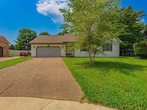 Nestled in a tranquil cul-de-sac in Audubon Estates, this beautifully updated ranch home offers 1,536 sq ft of comfortable living space. Entering the home you will be wowed by the vaulted ceiling and large great room with cozy fireplace. The open floor plan seamlessly combines the kitchen, great room and dining area creating a space perfect for entertaining. The open kitchen has plenty of cabinet and counter space and the laundry room is located conveniently nearby. The primary bedroom boasts a large walk-in closet and en-suite bathroom, The other 2 bedrooms are good size with plenty of storage space and share a large hall bathroom. The interior has been freshly painted and new carpet has been installed. The large cul-de-sac lot has a nice patio, large storage building and plenty of space for outdoor activities. The oversize 2.5 car garage offers ample room for vehicles and boasts tons of additional storage for optimal organization. Great location, great lot, great condition, great home! For a qualified veteran, the mortgage MAY be assumable at a 2.875 interest rate.