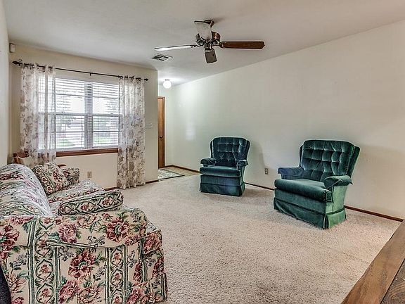 Great location off of 1-35. This 2 living room, 3 bed, 1.1 bath with remodeled kitchen and dining room will not disappoint. Underneath the flooring is the original hardwood floors. The large backyard has a shed and a 15x19 workshop for the handyman. The garage has a 12 person walk in storm shelter. Come check this home out!
