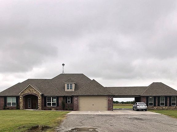 Warm and welcoming house with mother-in-law quarters and shop on 9.875 acres. Main house is 2,778 sq. ft. It has 3 bedrooms plus office, large master bath, jack and jill bath between bedrooms, and one half bath for guests. Granite tops and a wood flooring with carpet in the bedrooms. Master bedroom has walk in shower and built in safe room. The house also has propane stove, double oven, fireplace and a central vacuum system. Mother-in-law is 676 sq. ft. It has one bedroom, kitchen, bathroom with shower and washer and dryer hookups. Total living area is 3,454 sq. ft. Shop is 5,000 sq. ft. and has 3 phase electric Hot Tub Built in 2014 Collinsville schools