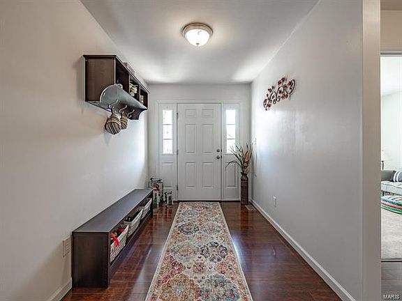 This custom house is breathtaking! As you enter the home you are greeted by beautiful handscraped cherry hardwood flooring in which is throughout the Foyer, LR, and Kitchen. When you enter the home there are 2 nice sized bedrooms to the left with a full guest bathroom in between. House has a main-floor laundry which is right off the garage so when u come into the house from doing yard work you can take shoes off without getting house dirty. This house also has an open floor plan with LR, Kitchen, Dinning Room. Custom kitchen is designed with beautiful cherry cabinets and has a beautiful island that adds more storage and counter space. The large Master Suite is off the LR with a spacious walk-in closet and full bathroom with double sink and tub/shower combo. House has a large unfinished basement that is open to your personal touch and is roughed-in for a full bathroom. The basement also has a sump pump, water softener, and water filtration system.