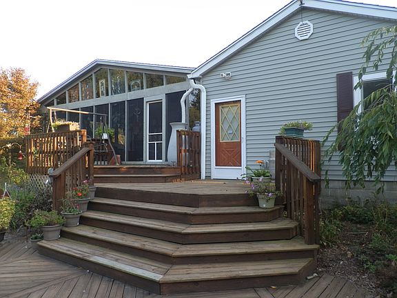 3 car finished attached garage w/attic storage, 2-4 bedrooms, 2 1/2 baths, Fireplace w/gas log, Storage barn, Storage shed under deck, Walk out basement w/slate pool table and bar, Large L-shaped master suite w/ master bath and walk in closet, Extra .58 acre lot included making it 1+ acres (not included in the Zestimate), New laundry room added on, 20x15 workshop, 34' screened porch, Large laundry room, Pantry, Waterfall pond w/fountain, Fire pit patio, Gazebo, Updated: roof heat pump, vinyl windows, vinyl siding, countertops, and water heater. Great view of Otter Creek. Shown by appointment only. $186,000.