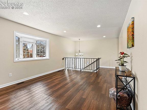 Welcome home! This impeccably renovated house has been thoroughly designed with upgrades and modern amenities. Plenty of space to unwind in your four bedroom, two bath bi-level home with both a spacious living room and a huge great room. Stunning LVP flooring and new high-grade carpet throughout. Great room boasts a beautiful flagstone wall with electric fireplace that adds elegant ambiance and functionality. Entire interior has been freshly painted a beautiful neutral color that will go great with all your furnishings. Quartz countertops and beautiful subway tile backsplash grace the updated kitchen where you’ll enjoy creating gourmet meals and gathering with friends. New stainless steel refrigerator, dishwasher, microwave and range are waiting for you. Ample cabinetry and spacious pantry provide all the storage you’ll need for food items and your kitchen gadgets. The gracious bay windows in the living room and primary bedroom allow natural light to flood the house. Updated light fixtures, new ceiling fans and window blinds add style and functionality to every bedroom. Both bathrooms have been transformed with modern fixtures, new flooring, stylish ceramic tile and lighting. New washer and dryer. Newer vinyl windows, newer roof, newer furnace and water heater. Curb appeal enhanced by new concrete porch, driveway and landscaping. Slider on main level opens to nice sized deck with stairs leading to your huge fenced-in back yard and new spacious patio where you’ll find yourself enjoying the sunny Colorado weather! Home has been freshly painted outside as well! One car garage with 2 remote openers. No need to cram storage items in the garage. The huge shed offers ample space for all your tools and toys. Easy commute (less than 20 minutes) to Fort Carson Army, Peterson Air Force and Schriever Space Force Bases. You can also enjoy plenty of time outdoors at the Blue Stem Prairie Open Space, just blocks away.
