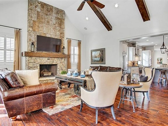 A Perfect Blend of Luxury and Privacy in the Heart of Sought-After Vickery! This one-of-a kind T. Olive home offers an exceptional floor plan and finishes to the most discriminating buyers. The bright, open, flowing floor plan boasts a chef's dream kitchen features an impressive 14ft granite island, Thermador and Kitchen-Aid appliances, gas lanterns, custom brick backsplash & handmade cabinetry. Family room has a custom built fireplace with poplar, stone & hand-carved mantle plus exposed wood beams that perfectly accent the vaulted ceiling. You'll love the exquisite millwork/cabinetry that goes above and beyond...especially the wide plank acacia wood floors throughout. The lovely owner's suite is located on the main level plus beautiful spa, mirrored TV, and custom closet. Enjoy year round views of the pond off the master (in fact these views can be enjoyed from all 3 levels of the home!). The upper level hosts a loft area, huge secondary bedrooms with walk in closets, and updated bathrooms. The finished terrace level showcases a finished media and recreation room with plenty of room to expand or leave as storage if desired. Private backyard oasis is perfect for entertaining and features a stone fireplace. Professionally landscaped. 3 car garage. Certified EarthCraft boasting exceptional quality, energy efficiency & character. Nestled in beautiful Vickery with fabulous destination dining, retail & entertainment and 10 minutes to downtown Alpharetta and close to GA400.