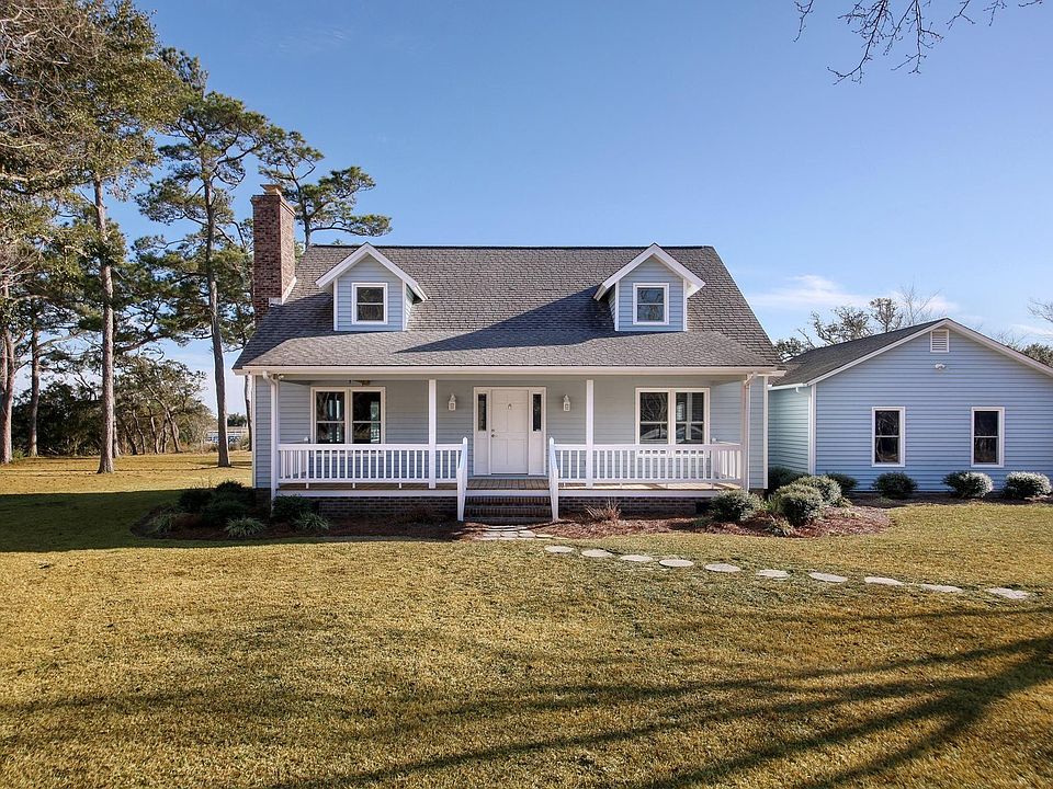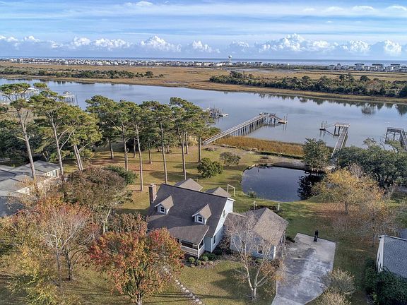 BREATHTAKING VIEWS OF THE ICW from this 3 BR, 2 BA, 2478 SQ FT property in the quiet Tarheeland Acres neighborhood in Ocean Isle Beach. Take a stroll out on the 6’ wide private pier with a floating dock and new ramp or relax under a spacious covered gazebo overlooking the charming, backyard pond and ICW. Beautiful hardwood flooring is showcased throughout the lower level with a sizable kitchen highlighting a gorgeous water views of the pond and ICW, lots of cabinets and counter space, breakfast bar, and an adjacent separate laundry room with sink. A bright family room features lots of natural light, plantation shutters, and access to a large, screened porch and rear deck offering privacy & plenty of room to relax or entertain. The living room features a wood burning fireplace, and a dining area with access to a Jacuzzi room overlooking the deck and backyard. The lower level hosts one private bedroom and bath. A gorgeous hardwood staircase leads to a large bedroom on the second floor and rear office with lots of windows and water views. A second upper bedroom boasts wonderful views from a private rear balcony. Other features include a spacious 2 car garage, a generous sized lot and no HOA fees.