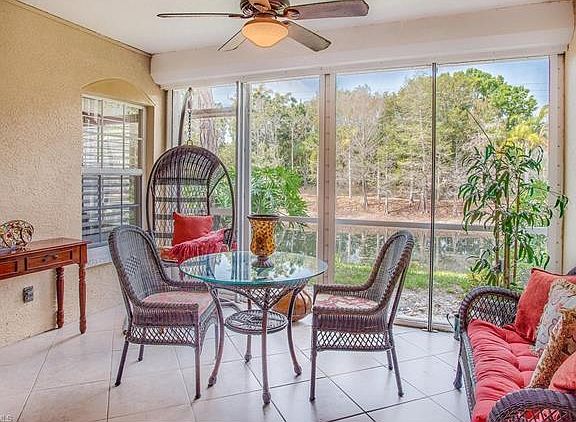Well maintained water view condo located in peaceful Calusa Bay South. Beautifully decorated and appointed, this 2 bedroom and 2 bath first floor unit features stainless steel appliances, a breakfast bar, an eat in kitchen, a generous living room and dining room and a split floor plan. The main living area opens onto the screened lanai overlooking a waterway with serene fountains. Calusa Bay offers luxury amenities that include a community pool, walking and biking trails, a fitness center, tennis courts and gated security. Located minutes from Mercato, Waterside shops and the beach, Calusa Bay is condo living at its best!