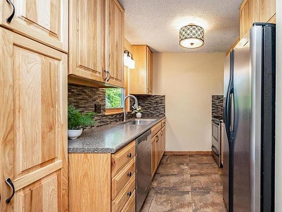 Welcome home to this cute 3 bedroom, 1 1/2 bath home located in a lovely NE side neighborhood. Freshly painted inside and out. Beautiful hickory solid wood floors in living room & hall. Custom galley style kitchen with high quality hickory cabinets, Corian solid surface counters, stainless steel appliances, single stainless steel bowl sink. Large walk out finished basement well suited for entertaining, has brand new vinyl plank flooring by bar area. Large fenced in backyard with deck, patio, new retaining wall, shed & wooded views. New roof in 2020. Seller is including a 1 year HSA home warranty.