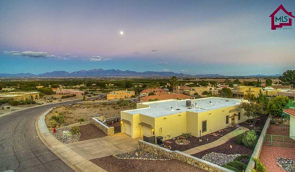 Marketed by Peter Skowronski. Call 571-8847 or view: www.livelascruces.com. Layout of the home gives maximum views of the Organ Mountains & City Lights. Large windows line the entire East side of the home providing views from virtually every room. Master Suite has additional room that can be used for a nursery, office or hobby room. The grand view afforded by the entry foyer has direct access onto the cove patio to be enjoyed in any weather. Substantial yard with fire pit, custom gates, new privacy rock walls, landscape overhaul and large attached 6'x16' storage room. Sun Shades on East facing windows provide energy efficiency and privacy. 2 Master Suites, new elastomeric roof with transferable warranty, 2 water heaters, newer appliances, instant hot water, filtered water in kitchen, swing out shelf pantry and water softener and new floor tile are only a few of the upgrades in this home. Entry through 2 car garage with attached workshop has access to sink, toilet and shower.
