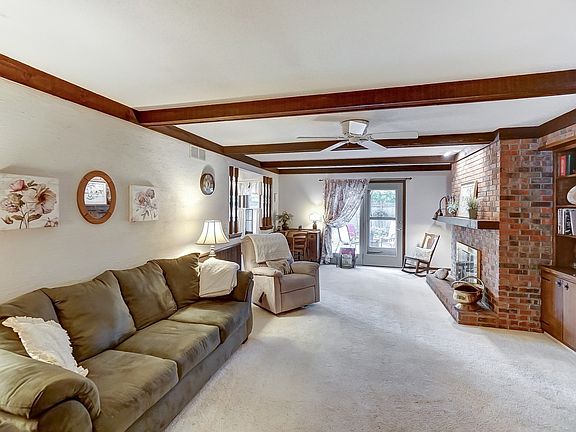 Welcome to this 3 Bedrm, 2 Full Bth Ranch on a quiet cul-de-sac wooded lot. Great curb appeal & lovingly cared for home. New driveway recently installed. Covered front porch overlooks the luscious landscaping & freshly mulched flowerbeds w/beautiful flowers. Entering the home through the foyer offers space for a Lg coat closet & features wood flooring. The Large open Grt Rm has brick fireplace w/built in book cases & storage. French doors lead to double decks & your own private fenced Oasis. Luscious landscaping just perfect for enjoying nature. The 3 bdrms are good sized. The Master Suite has a walk-in closet & French doors w/side windows leading to the back yard. There is another full bath in the hallway. The Kitchen features a plant ledge window w/plenty of cabinets & counters. The refrigerator, newer dishwasher & stove are included but at not warrantied. Separate laundry room as you come in from the garage also offer space for coats & pantry. The Sunny Bay Window is located in the Dining area bringing view of the beautiful natural back yard.