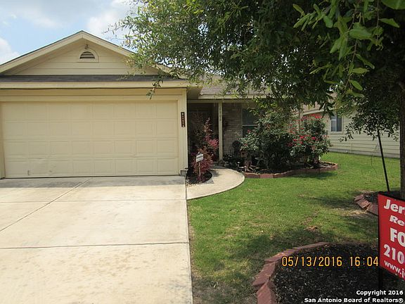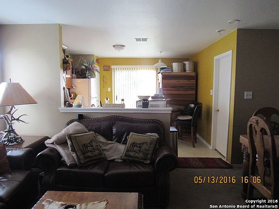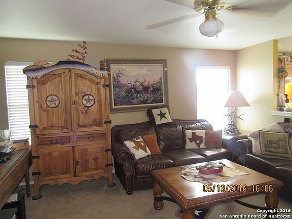 NICE EIGHT YEAR OLD HOME LESS THAN FIVE MILES FROM LACKLAND AFB, WILFORD HALL, AND MEDINA BASE. STOVE, REFRIGERATOR, DISHWASHER, GARBAGE DISPOSAL, AND WINDOW DRESSINGS REMAIN.PRIVACY FENCED BACK YARD. TENANT ON A MONTH TO MONTH LEASE.TENANT HAS BIG FURNITURE FOR THE SIZE OF HOUSE. THE POTTED PLANTS AND WOODEN PLANTERS IN BACK YARD DO NOT REMAIN.