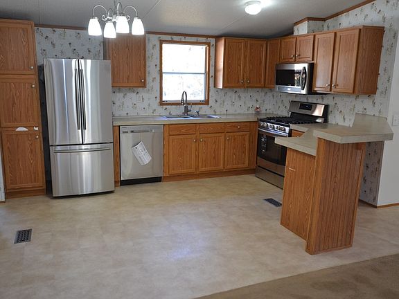 Totally rehabbed manufactured home features 3 large bedrooms, 2 full baths, laundry room and lots of closet space. Large eat in kitchen includes all brand new stainless steel appliances and tons of cabinets. Master bedroom includes full bath and walk in closet with organizers. Brand new 50 year roof and air conditioner!