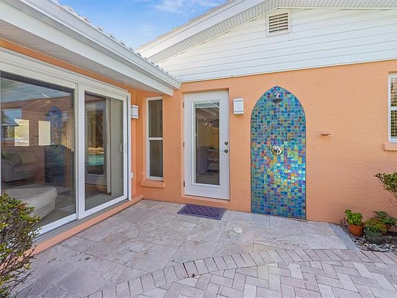 Welcome to your dream lakefront retreat! This fully remodeled, solar powered, 2-bedroom, 2-bathroom home offers both comfort and space, featuring stunning travertine tile throughout. Enjoy gorgeous views of Clark Lake with 90 feet of seawall and a composite dock perfect for launching kayaks or simply soaking in breathtaking sunsets and birdwatching. The screened-in porch offers an extension of living space and is a great place to come in and relax after an afternoon spent in the salt water pool with spa. Inside, the updated kitchen boasts stainless steel appliances, blending style and function. The converted garage now serves as a versatile bonus room, perfect as a game room, additional sleeping space, or a cozy retreat—not included in the official square footage. The split design is ideal. The bedrooms are both spacious and practical. Located centrally, you’re just minutes from local shops, beautiful beaches, and convenient trolley stops. Whether you’re entertaining, unwinding, or exploring, this home has it all. This home has been a successful rental for more than 10 years. It sustained damage during Helene and has been fully renovated. Is being sold turn key and but owners have decided not to put home back on rental market.
