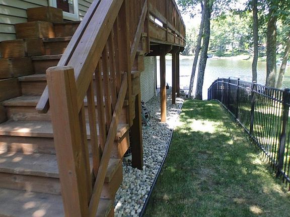 Beautiful move-in ready lakefront home on quiet, low traffic Fish Lake. Excellent fishing and swimming. Nice sandy beach, upgraded dock and wrap-around lakeside deck. Great landscaping with boulder retaining walls, brick paver walkway and patio, and limestone steps. Back lot includes newly built 1200 sq. ft. heated garage w/attic storage area and dedicated entertainment room/workshop. Open floor plan with cathedral ceilings and awesome lake views; you can watch the fish from the above loft. Large gourmet kitchen with center island/range exhaust hood. Energy efficient 2x6 construction with dual pane Anderson windows and sliding doors. Whole-house sound system, also pre-wired for media data and window/door security. Full basement with two walkout patio doors. You will not be disappointed.