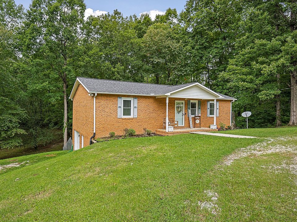 This 3 bedroom, 2 bath brick home has a full basement, tile showers, granite countertops, pull in basement, all situated on an acre of land
