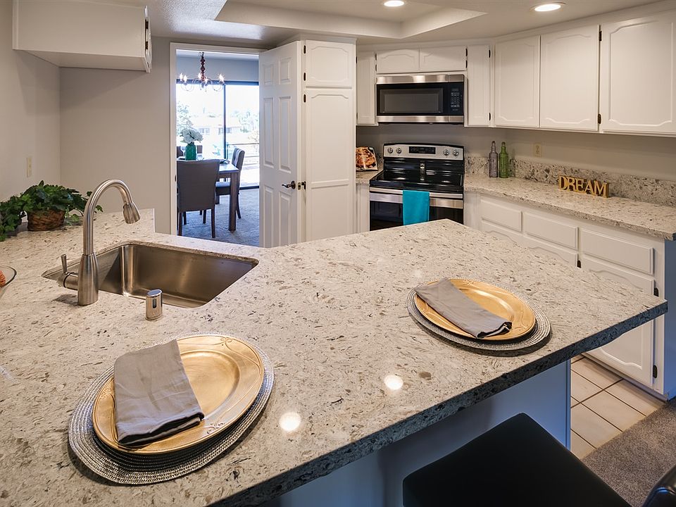 Ocean view, just remodeled sparkling 3 bedroom Las Playas townhome. Brand new quartz countertops, undercount sinks, faucets, paint, LED canned lights and carpet throughout! Open kitchen with breakfast bar and new SS range and microwave. New master bath shower and tile. Enjoy ocean views and sunsets from dining and living room, large tiled patio and guest bedrooms. Community features, pool, spa & tennis. Walking distance to Pacific Rim Elem. and Poinsettia Park. Close to beach, shops and freeway.