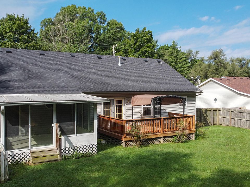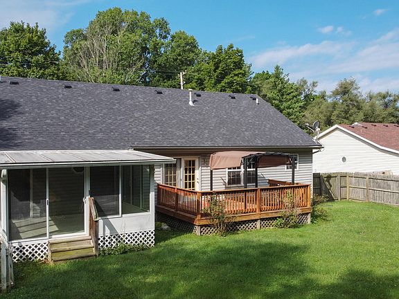 You enter a beautiful living room with vaulted ceiling and a fireplace. Walk into the nice size dining area and great kitchen abundance of cabinets. Lots of natural light from the large windows. Large master bedroom with master bath also leads out to a sun-room. Home has two additional bedrooms and another full bath in the hallway. A 2 car attached garage and a large outbuilding for storage.The home sits on a good size .33 acre lot.. All appliances remain.