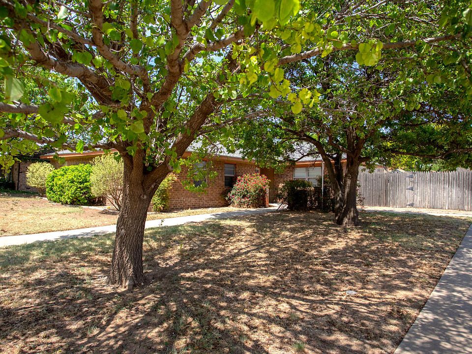 Roof shingles are getting replaced on this Estacado home! Mature trees & landscape grace the front yard. The large backyard has a covered patio, trees, storage, & wood fence. Inside has 3 ample bedrooms, with an on suite Master. Entry, Kitchen, & dining areas are tiled. There is a cute picture window over the kitchen sink out looking the lawn. Kitchen boasts counter & cabinet space a plenty, & accent pendant lighting! The brick wood burning fireplace with gas start makes the sunken den cozy, while the crown molding gives class. Backdoor is a French door with built in blinds. In the rear is the 2 car garage with attic access. Canyon schools.