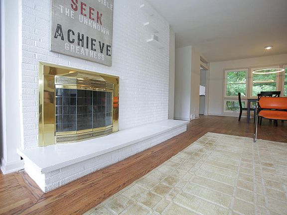 Iroquois Park can be your backyard at 6807 Norway Drive! Floor-to-ceiling windows with views from front to back (but on an elevated lot so you can't see in from the street), a split floor plan, oak hardwood flooring throughout, multiple decks and a three-season room that is not included in square footage are just a few of the best features of this three bedroom, three full bathroom brick ranch. The mid-century doublesided fireplace is a visual centerpiece as you enter with living room and dining area straight ahead. Fireplace opens to master bedroom on other side. Eat-in kitchen offers white Shaker-style cabinetry, granite countertops with small desk area, butcher block cutting space (or beverage station) next to fridge, skylights, Whirlpool stainless steel appliances.
