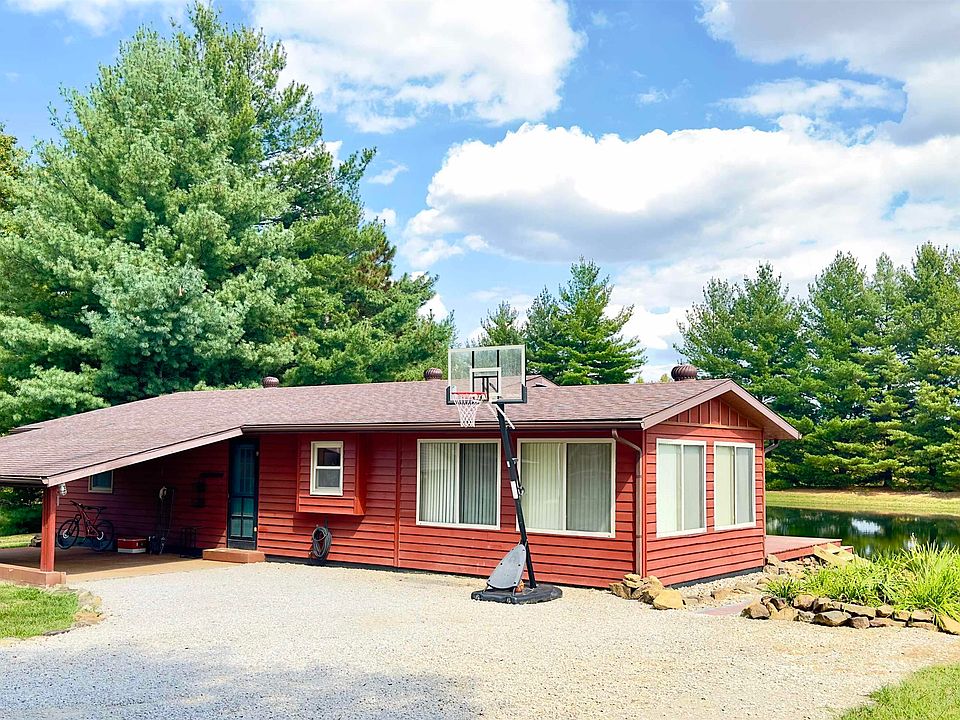 Grab your fishing pole and see where the pine tree-lined driveway leads you! This charming 2-bedroom, 1-bath home with just over 1,200 sq ft is nestled on 2.40 acres. The views are tranquil, the pond is stocked, the cozy fire pit is ready for toasting marshmallows, and the fish are flopping. The sunroom provides loads of natural light, and the deck is brand new. Outdoors you'll appreciate a 2-car detached garage, a garden shed and an additional outbuilding for extra versatility. Conveniently located less than 3 minutes from I-64, you can enjoy the best of both worlds: peaceful living with easy access to amenities. All you need is a fishing pole to start making memories in your own private paradise!