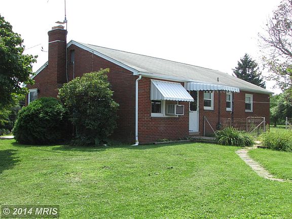 Very nice all brick ranch just outside city limits, low taxes! detached masonry garage/attached pavilion with masonry fireplace; 3 BR 1.5 BA home ; large living/dining room w/FP; eat-in kitchen, some hardwood floors exposed. Full lower level partially finished; many replacement windows. deeded right of way to rear farm field ( see attached deed). ESTATE SOLD AS-IS MUST USE AS-IS ADDENDUM