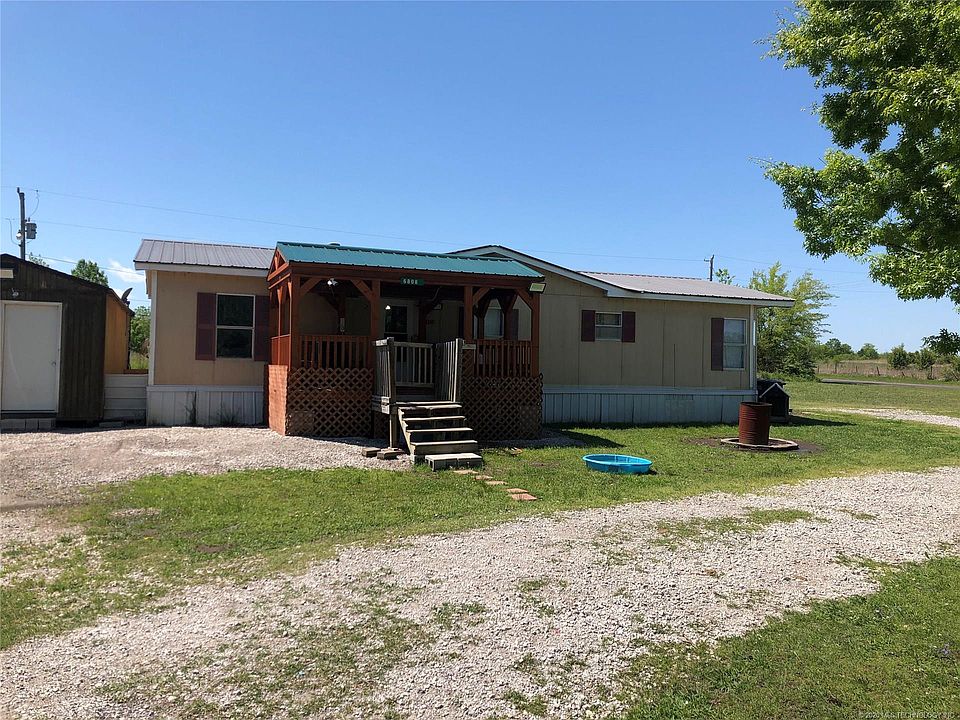 Nice double-wide, 3 bed, 2 bath manufactured home in rural Bixby. Large master bathroom and spacious living area. Property is currently rented on a month-to-month lease for $725 per month. The deck on the front porch and all the portable buildings on the property belong to the tenant. Property is being sold as-is. Buyer to verify all schools.