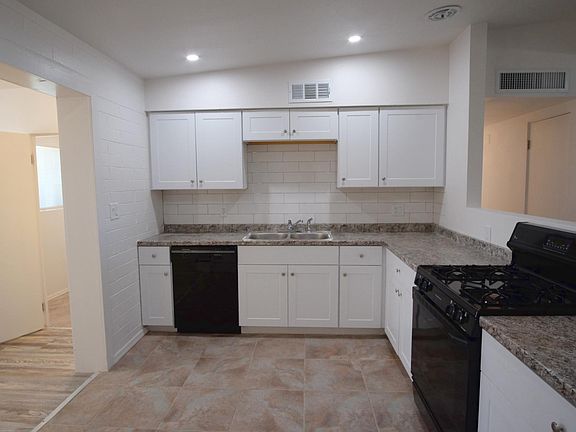 Text for a walkthrough video/more info. Completely remodeled 4 Bedroom/1.5 Bathroom + Family Room 1800sf Home with updates + features that include; New Flooring, Paint, Central Air Conditioning, Fixtures throughout; Kitchen updated w/ Granite Counters, Modern White Cabinetry + Tile Backsplash, Black Appliances + gas range; Laundry Room w/ Washer + Dryer; Master BR Suite w/ private 1/2 bath; Oversized Backyard + 1 car port space. 12mo minimum Lease, Costs are: Non-refundable $50/adult Application, $1750 Security Deposit, $150/pet with approved pet, $400 cleaning.