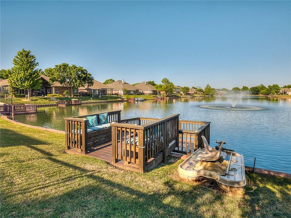 Welcome to your WATERFRONT RETREAT! With over 3100 square feet, this 4 Bedroom, 2.5 Bathroom Stunner will make everyday living feel like a "Staycation". The main level boasts a Living Room with Fireplace, Large Open Kitchen, Formal Dining, Study, and Master Suite with Back Patio Access and a Large Master Bathroom. Upper Level Features 3 Bedrooms, a Large Jack & Jill Bathroom, a Second Living Area with Walk-Out Balcony that provides a BREATHTAKING View of the Lake and Fountain. WAIT! IT DOESN'T STOP THERE! Additional Features Include: Sprinkler System, Covered Patio, Roof 2017, Brand New Private Dock with Lake Access, 2 Walk-In Attic Accesses, 3 Car Garage with Utility Sink, AND MORE! Schedule your viewing today! Virtual Tours Available!