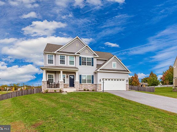 Almost new custom built home on fenced cul de sac lot in sought after Clover Hill community. Located outside of the city limits for lower taxes yet close to all the city amenities! Built in 2018 this home has all the bells and whistles! The floor plan is amazing! Main level includes a spacious office, vinyl plank flooring, gourmet kitchen with quartz countertops, touch screen refrigerator, stainless steel appliances, spacious eat in table space and HUGE walk in pantry. Cozy family room is right off of the kitchen with gorgeous stone /gas fireplace. Upstairs boasts a huge primary bedroom with TWO large walk in closets! Primary bath has a soaking tub and generously sized separate shower with two shower heads. Additional three bedrooms are all BIG and each with their own walk in closet! Enjoy the convenience of an upper level laundry room that is large and accommodating. A recent addition is the Trex deck with PVC trim and lighted staircase leading to the vast Nicolock paver patio with firepit! The spectacular mountain views enhance the ambiance of the setting making it the perfect space for entertaining or relaxing. All this and a two car garage for plenty of parking and storage. You won't want to miss this one!!