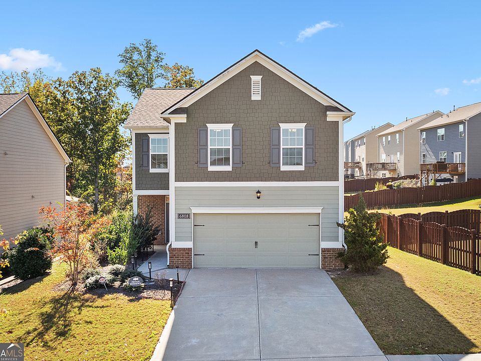 MAJOR PRICE IMPROVEMENT! Welcome to 6808 Lake Overlook Ln, a captivating single-family home nestled in the charming community of Sterling on the Lake. This beautifully designed detached residence offers a generous 1,955 square feet of living space, featuring four spacious bedrooms and two and a half bathrooms, perfect for a variety of lifestyle needs. Step inside to discover a harmonious blend of vinyl, tile, and carpeted flooring throughout, complemented by elegant recessed lighting. The heart of this home is the open kitchen, boasting granite countertops, a functional island, and a full suite of appliances including a gas stove/oven, dishwasher, and refrigerator. The eat-in kitchen and pantry provide ample space for culinary endeavors. Relax and unwind in the inviting living area with a working fireplace, ideal for cozy evenings. The primary suite is a true retreat, offering a walk-in closet and an ensuite bathroom with double sinks, granite finishes, a separate shower, and a luxurious tub. Enjoy the convenience of an attached garage and a dedicated laundry room with a washer and dryer included. Step outside to the backyard and patio, perfect for outdoor gatherings or peaceful relaxation. Experience resort-style living at Sterling on the Lake and all of its amenity-rich features, including a 24-hour fitness center, 4 pools, 4 playgrounds, 3 tennis courts, 2 clubhouses, pickleball courts, scenic nature trails, bike trails, an amphitheater, library, Cafe, regular social activities, and a private lake for fishing and kayaking. Conveniently located near Lake Lanier, shopping, dining, and hospitals, this home offers a luxurious retreat in a vibrant community. Don't miss the opportunity to call this delightful property your new home!