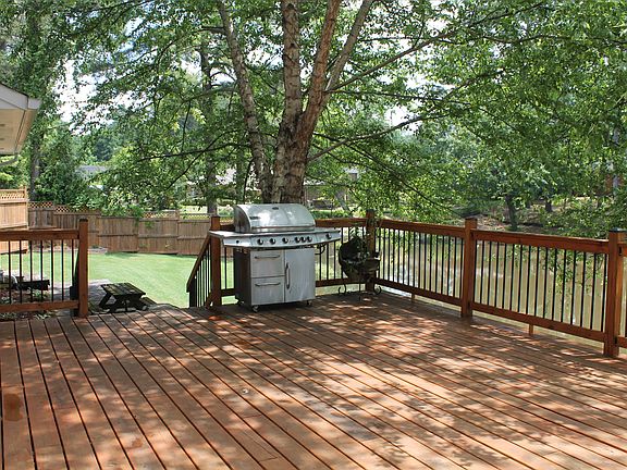 Discover this Beautiful 4 bedroom 2.5 bath LAKEFRONT family home tucked away in a cul-de-sac next to the community pool and rec center just minutes from shopping and restaurants. Escape everyday on the enormous back deck overlooking a sparkling lake. Throw open the windows and let the breeze whisk through the open floor plan. Prepare a family meal in the large kitchen and dine outside on the deck. Wind up the staircase to good sized bedrooms for the kids and a large master with renovated bath.