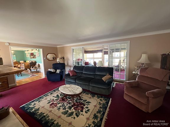 Schedule today for this beautiful home! Come in the circle drive to view this sprawling brick ranch, nestled off the road. Inside you will find 3 main floor bedrooms and 2 full baths. Formal dining room, living room (with hardwood floors and fireplace), family room and kitchen. Wait until you see the giant basement! Basement has a full bath, fireplace, laundry room and 2 other potential bedrooms. Sit on your sprawling back deck (majority covered) and enjoy the views. You won't believe the back garage that is in addition to the 2 car attached garage. You could fit potentially 9 cars (2 deep) and even more under the carport. Garage is heated and has a bathroom! Additional 2 sheds. Newer roof, furnace, water heater, Pela windows are a few of the many upgrades. Call today.