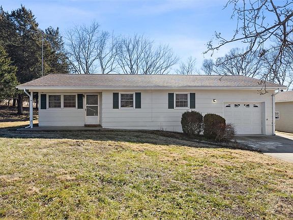 Showings begin Friday, February 17th. Open House Sunday, February 19th 1-3pm. Need garage space? In addition to the 1 car attached garage, this well cared for home has a huge 32'x24' framed detached garage with 220 electric. New architectural roof & gutters on both structures in October 2022. Mostly level 1.19 acre lot has mature trees, and backs to picturesque Big River bottomland. Some fencing. Clean kitchen features a double sink, smooth electric cooktop range, dishwasher, built-in microwave, and tiled backsplash. Fresh paint in main living areas. Well situated between major highways 44 & 30. 8 minute drive to shopping and restaurants on The Boulevard. 12 minute drive to Rockford Beach boat ramp. 6/10 of a mile to the Pleasant Valley Nature Preserve that boasts 1.4 miles of gravel trails. Main level laundry. 14'x9' bonus room on home's southern side. Double driveway provides plenty of parking, and covered front porch even has room for a couple chairs.