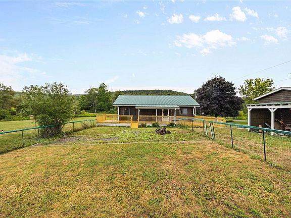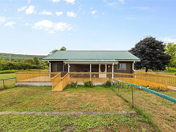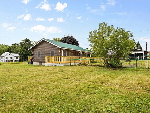 Charming Furnished Log Home - Airbnb Ready! Escape to this delightful log home in a peaceful country setting. This beautifully maintained ranch-style retreat offers over 900 sq. ft. of comfort on nearly an acre of land. The open-concept “Great Room” combines the kitchen and living area, featuring stunning vaulted wood ceilings for a warm, rustic feel. Completely remodeled, the home boasts a stylish kitchen with quality appliances including a stainless steel refrigerator, stove, and dishwasher. The spa-like bathroom is a true highlight, with double sinks and an impressive stone shower featuring a built-in bench, multiple shower heads, and a luxurious rain shower. The single bedroom is generously sized with a vaulted ceiling, creating a cozy yet spacious atmosphere, and the well-lit laundry room adds convenience. A covered front porch overlooks serene hillside views, and outside you’ll find a one-car garage with workshop or storage space, and an additional large storage shed. Offered fully furnished and turnkey, this home is truly Airbnb ready. With a metal roof just about 9 years old, this property is ready for you to move in and start living the dream- or hosting guests immediately!