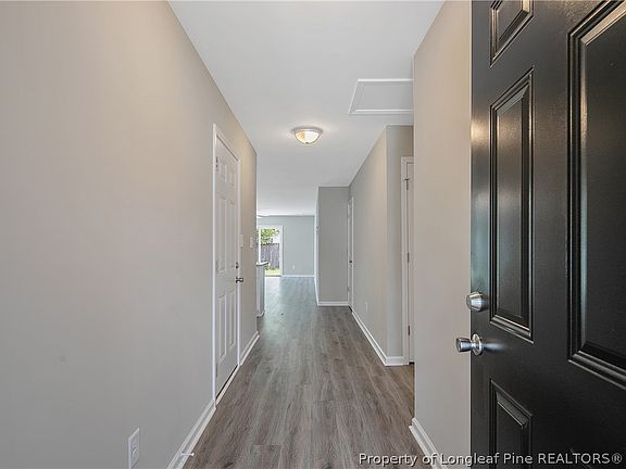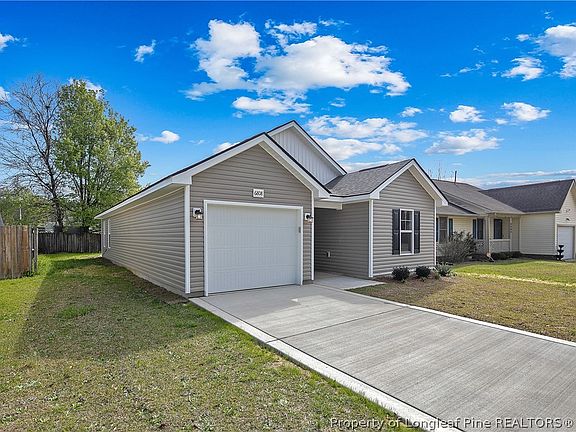 New construction home minutes from Canopy gate to Fort Bragg. 3 bedroom, 2 full bath with open concept floor plan. Attached 1 car garage. Front door to foyer of home and entrance to garage. Beautiful new kitchen with white cabinets and granite countertops. Large island for extra seating. Great size living space with sliding door to backyard outdoor patio. Split floor plan for privacy to master. Master bedroom with walk in closet and private full bath. Master bath with dual sinks and vanity with great counter space. Shower and extra linen closet. Other 2 bedrooms on other side of home with full bath with tub/shower combo. Come take a look at this new construction home in a neighborhood with playground and walking trail.