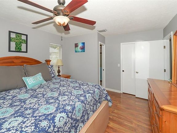 - Interior Features: Ceiling Fans(s), Master Bedroom Downstairs, Split Bedroom, Vaulted Ceiling(s), Crown Molding, Walk-In Closet(s), Window Treatments, Solid Surface Counters, Thermostat