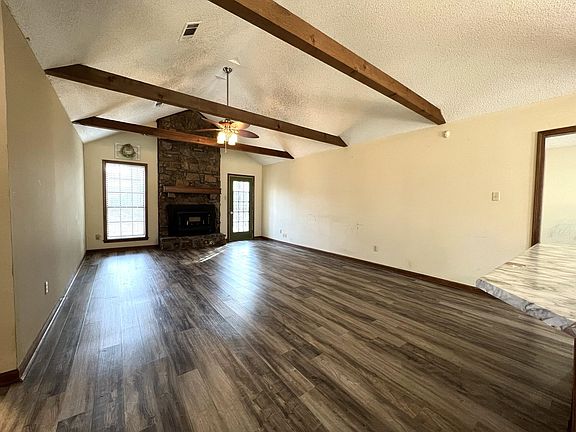 Situated in a quiet cove, this Easthill ranch features a spacious kitchen open to a huge den with cedar beams and stone fireplace, 3 bedrooms including a primary with luxury bath, separate dining room, office (or 4th bedroom), shared bath with double vanity, wet bar, laundry room, garage and shed. Home has laminate flooring throughout. Needs some exterior wood repairs, paint and various finishing touches to be great again. Property is being sold AS-IS. Don't miss out on this opportunity!