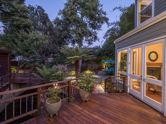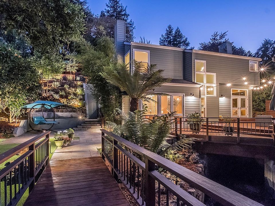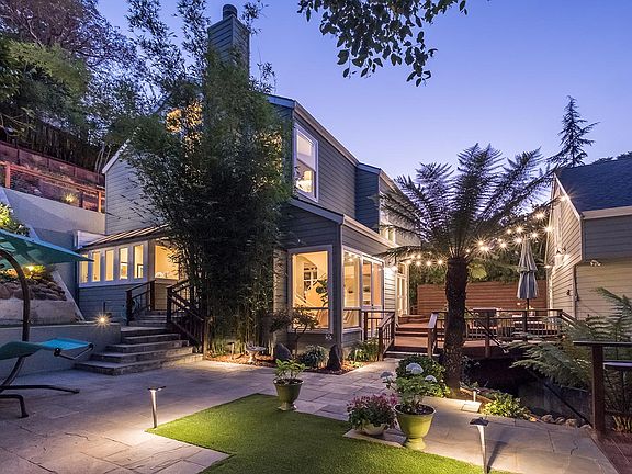 Designed and built by an architect as his own personal residence, this stunning home will take your breath away. As you pass through the gorgeous gate you're whisked away to another world. Cross the bridge over the gently flowing stream and take in the lush landscaping and serene koi pond. This home truly is outdoor living at it's best. The landscaping is superb and the spacious deck is beyond exceptional. Upon entering the home you'll find a formal dining room and a sunken living room with fireplace and French doors that lead to the deck. The open kitchen is a chef's delight with a Wolf 6 burner range, ample counter space, and wraparound breakfast bar. The open kitchen design also includes a cozy family room with fireplace. Ascending the open staircase to the second floor, there are nearly floor to ceiling windows offering exceptional natural light. The master suite features cork floors, a gorgeous walk-in closet and spacious master bath. At the opposite end of the hallway, you'll find three additional bedrooms, one of which has vaulted ceilings and a loft. Above the garage is an amazing in-law suite with full bath, kitchenette and a custom-built queen size Murphy bed. On those rare hot summer days, stay cool and comfortable thanks to the dual-zone climate control system including air conditioning in the main home and in-law suite. For commuters, highway 13 is conveniently nearby. The shops, restaurants and grocery stores of Montclair Village is a short jaunt down the road. The homeowners made numerous improvements over the years, including a new roof in 2011, insulated garage doors, updated electrical panel and replacement of the wood decking/gate/bridge over the creek. Detached in-law suite with kitchenette and full bath Dual-zone climate control with air conditioning Updated electrical panel Many new windows/skylights (2013-2015) New stairs to upper yard area New synthetic lawn