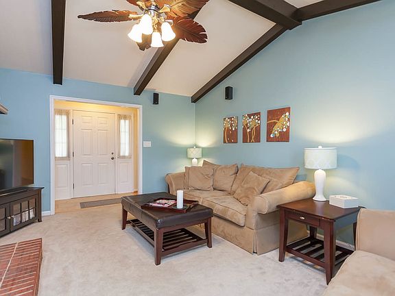 Wonderful Ranch home on quiet cul-de-sac lot! Great location! Exterior of home freshly painted! Spacious Family Rm w/ vaulted ceiling, brick fireplace & exposed beams. Renovated Kitchen w/ updated SS appliances, center island, built-in wine rack & built-in desk space, breakfast area. Dining Rm features hardwoods & crown molding. Updated Master w/ WIC, crown molding, granite in bath! Spacious BDRMs. Amazing outdoor living w/ large deck, hot tub, fenced yard, fire pit & storage shed! Oversized 1 car garage!