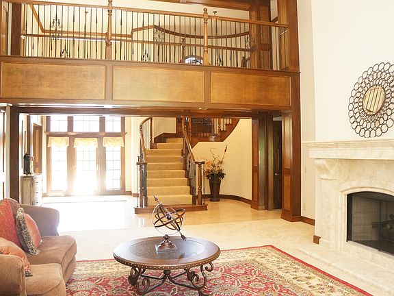 Gated parade winner. New hardwoods, honed travertine & wrought iron balcony. Open greatroom & kitchen w/10' center isle. 18' ceilings & cast stone FP in formal living. Master w/travertine, glass shower, FP, & Whirlpool. Balcony with waterfall view.