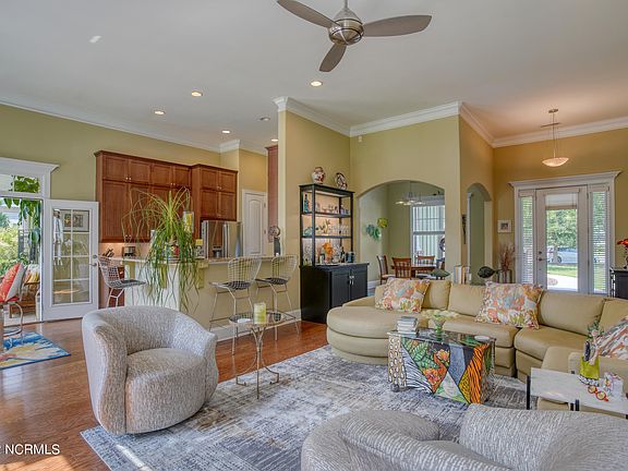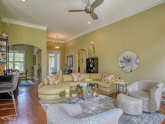 This beautiful home in coveted Tanbridge Park features an ideal split floorplan with 3 bedrooms on the 1st level & FROG with large walk-in closet & full bath above the oversized 2 car garage. Create culinary masterpieces in your gourmet Kitchen with gas oven/range, granite countertops, tile backsplash, stainless appliances, soft close drawers & pantry. Your Breakfast Nook leads to a light-filled lanai - both overlooking the peaceful & private, fenced backyard on one of the largest lots in the community. Whether enjoying morning coffee or evening cocktails, you'll love spending time in your lanai with doors leading to your Master Suite. Wood floors greet you in the Foyer & carry throughout most of the first floor including the luxurious 1st floor Master Retreat with trey ceiling, 2 closets, dual sinks, large tiled walk-in shower & separate tub. Entertaining family & friends is fun & easy, whether in your spacious Great Room with bar area or outdoors on the custom patio with stone walkway, garden area and gorgeous landscaping. PLUS walk, bike, or cruise on your golf cart to Mayfaire's movies, restaurants, shops, coffee houses, bookstore & grocery stores, and the new Biggers Market. Or take an adventurous afternoon ride on the Cross City Trail to Historic Downtown Wilmington on the river. You're only minutes from Wrightsville's sandy beach & the Atlantic's shimmering ocean waves, and also conveniently near UNCW and ILM airport. Kids can even walk to Blair Elementary and Noble Middle Schools. Other perks of this wonderful home are a rocking chair front porch, high ceilings & tall doors, dual garage doors, gas fireplace, irrigation system, alarm system, front yard maintained by the HOA, termite bond, and all appliances including the washer & dryer convey. Move right in & start enjoying the amazing lifestyle this home & area have to offer.