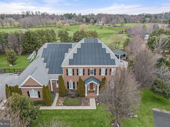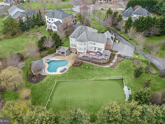 Get ready and get excited to experience this gorgeous estate home on a cul-de-sac and a premium lot that backs to a scenic horse farm in the sought-after River Hill High School district. This luxurious 3-sided brick colonial has endless interior and exterior upgrades. Outside, the residence is equipped with fully owned 17.5KW solar panels that provide very low electric bills. The exterior rear is upgraded with soccer in mind by the Maryland Terps Soccer Coach, and his wife, Hall of Fame Soccer Player and Coach. Their passion for Soccer and for entertaining is expressed in a professional grade turf soccer practice field, goal, with green pebble and drainage. Opposite the green turf, and overlooking the beauty of a rolling green horse farm, is a glistening in-ground heated pool connected by a quiet waterfall and spa hot tub, a gathering pavilion, outdoor fireplace, fire pit, pergola covered patio, built-in stone bar, and gas cooking station. Overlooking the dramatic turf and pool is a low-maintenance TREX dining deck and corner screened gazebo. Welcome guests inside from the front, barrel-vaulted portico into a central foyer and dramatic open staircase flanked by Living and Dining Formals. A generous open plan unfolds into a private study and adjacent half bath on one side, and a superbly upgraded cook’s kitchen, breakfast room, and family room on the other side. With a dramatic stone fireplace and light streaming from a wall of windows that frame delightful views of the rear oasis, the central family room exudes a casual elegance and relaxation vibe. The laundry and mud room offers a secondary front entry and is adjacent to a secondary back stair that completes the main level. Upstairs, all four en-suite bedrooms enjoy an upgraded attached private bath. The primary bedroom suite is thoughtfully planned with a sitting area, dressing area, two walk-in closets, and a spa-like luxury bath with separate vanities jetted tub, and a walk-in shower. Downstairs, the lower level is designed for fun and more entertaining. There is an expansive recreation space and the floor plan includes a theater room with recliners on risers, an exercise room, and an adjacent wet bar with a full back bar of cabinetry and a beverage fridge. A fifth bedroom and full bath complete the spacious lower level. Full daylight windows and a walk-out slider open to a covered patio, dining pergola, and outdoor gas cook station with gas grille and ice chest. Bring your soccer ball and come home to perfected living in a serene setting with endless entertainment options.