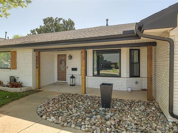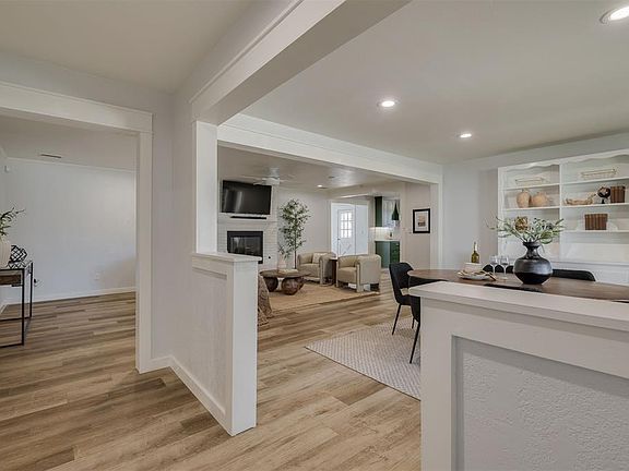 Welcome to this beautifully updated home in the charming Edgewater community, just moments from Lake Hefner’s trails, golf, sailing, and outdoor recreation. Step inside to find spacious formal living and dining rooms. The front living area features a gas-log fireplace, while the dining room is accented with large bay windows and custom built-in cabinetry—ideal for hosting or everyday use. With two generous living spaces, entertaining or relaxing at home has never been easier. The kitchen is a standout, thoughtfully updated with quartz countertops, KitchenAid stainless appliances, custom inset cabinetry with pantry, display cabinets above a stylish coffee bar, updated lighting, and bold Kelly green paint that adds character and charm. The primary suite includes a private ensuite bath with a walk-in shower and a large walk-in closet. Two secondary bedrooms offer dual closets and share a well-appointed hall bathroom. Step into the backyard and enjoy a covered patio with an extended concrete pad, ideal for outdoor gatherings or weekend relaxation. The fully fenced yard offers privacy and a clean, low-maintenance feel. Major updates include: exterior paint and trim, cedar porch posts, all new fencing, added concrete patio, windows, canned lighting, flooring, Trane HVAC system, garage doors, and opener. This home blends comfort, style, and location. Don’t miss your opportunity to make it yours—schedule your showing today!