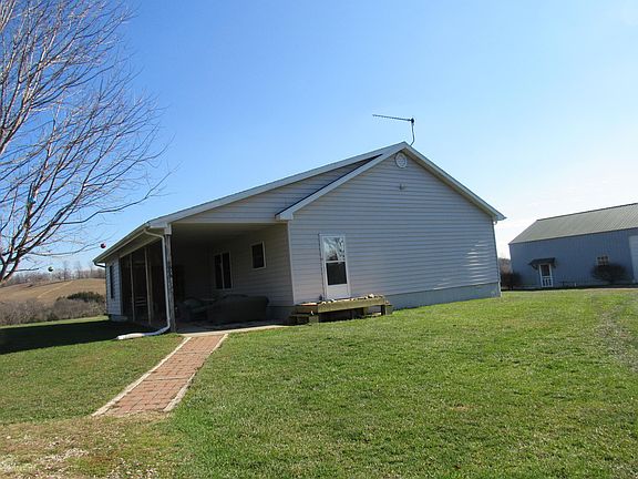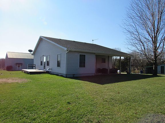Nice home sits off road, state highway frontage, private setting on 5 acres m/l, excellent fencing, pasture, some big beautiful trees, and what a VIEW off the back deck!! There is a 36X45 workshop with living quarters, concrete floors, 220 electric, large rollup door and overhead storage. There is a smaller storage shed with lean too. The home features vaulted ceiling in living room, large great room, kitchen has an abundance of counter and cabinet space, all appliances stay. House has 2 bedrooms, 1 bath, the third bedroom and 2nd bath is in the detached living quarters. Great home, hurry this won't last long!