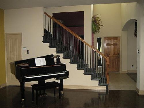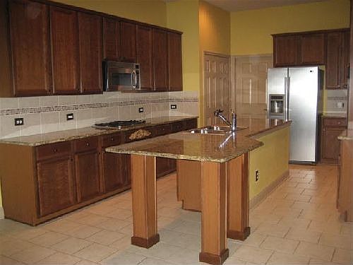 Upscale home with upgraded cabinets, wood flooring, granite countertops, lighting, custom wall finishes, and window treatments throughout. 10 foot ceilings or higher on first floor. Large eat-in kitchen with granite countertops, island, stainless steel appliances, refrigerator, double ovens, dishwasher, microwave, and gas cook top. Master suite with vaulted ceiling is on the main level and features bay windows, a luxury bath with separate commode area, and two walk-in closets.